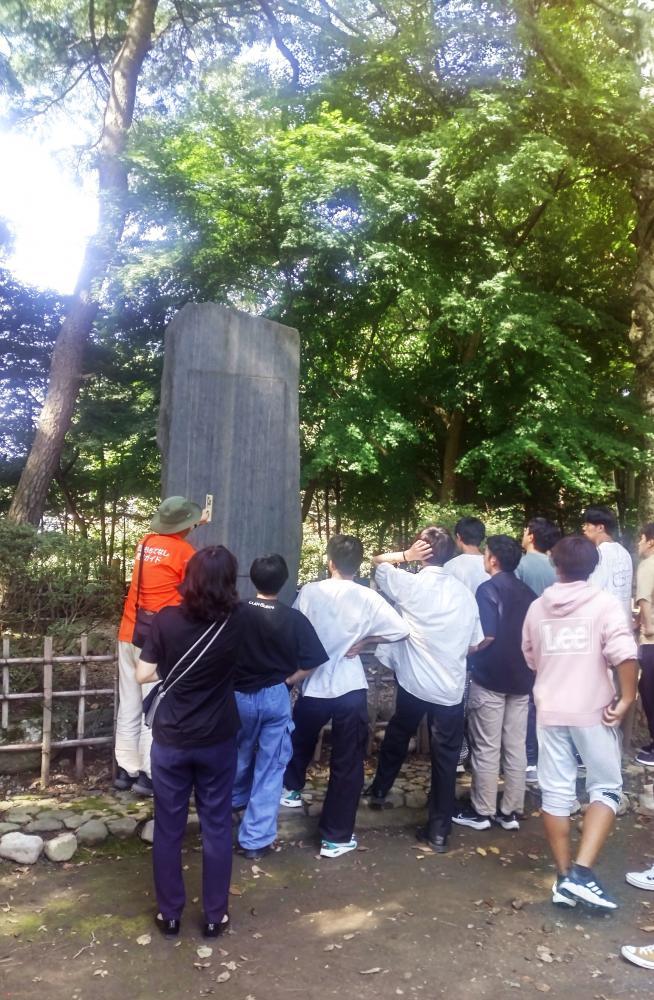 「宮沢賢治が実際に旧菊池捍邸を訪れたり、捍(まもる)さんと対面したという確証は最後まで得られなかった」―。『黒ぶだう』モデル説の提唱者のひとりで、花巻市文化財調査委員の木村清且さん(74)は足かけ20年近くにわたって主張してきた「モデル説」が実は、最初からこの建物を作品の舞台(モデル)に見立てた“見切り発車”だったことを初めて、明らかにした。花巻市の上田東一市長がこのモデル説に疑義を呈しながら、一方でふるさと納税の返礼品のひとつである「花巻黒ぶだう牛」を宣伝するための“広告塔”に利用している事実が発覚。”二枚舌”手法によるある種の官製”詐欺”ではないかと批判したのがきっかけになった。市民の間には二重の”犯罪行為”ではないかという批判が出ている。 『黒ぶだう』モデル説の定説化にあずかったのが木村さんら二人の共編になるガイドブック「賢治寓話『黒ぶだう』の素敵な洋館はここです」(2016年刊)である。現在、市内御田屋町に現存する旧菊池捍邸についてはこう書かれている。「江戸時代さながらの茅葺き平屋の武家屋敷の並ぶ通りに忽然と現れた二階建ての西洋館、それは賢治が夢見たイーハトヴの出現でした。『黒ぶだう』はこの建物が賢治の想像力をかきたて、産みだされたお話しなのです」 木村さんはこの間の経緯をこう話した。「当時、衰退する一方の中心市街地を活性させるため、賢治を軸としたまちづくりや景観づくりを模索していた。そんな時、賢治に詳しい共編者の方がこの建物とぴったりの賢治作品があると…。それが『黒ぶだう』だった。その作品を改めて読んでみると、イメージが旧菊池捍邸に違和感なく、重なった。しかし裏付けが必要なので、捍さんの日記や名刺類など膨大な資料を精査し、さらに賢治との接点を捜して捍さんが勤務したことがある台湾にまで足を延ばした。しかし結局、それを立証する根拠を発見することはできなかった。そんな中、モデル説だけがひとり歩きしてしまった」 賢治“受難劇”は上田市政になってから顕著になった。90億円を超える莫大なふるさと納税の寄付額(全国自治体で第13位)を支えているのは牛や豚などの食肉関係が大半で、付加価値を付けるための“賢治利用”も目に余るようになっていた(「モデル説をめぐるミステリー・シリーズ」や7月27日付と8月17日付の当ブログ参照)。この件に関して、木村さんは「返礼品の宣伝にモデル説が利用されているとは知らなかった。いまは(旧菊池捍邸は)『黒ぶだう』が読みとれる作品だと説明することにしている」と話した。しかし見方によっては、ある種の“捏(ねつ)造”とさえ受け取られかねないモデル説とそれを利用した“錬金術”……賢治を“食い物”にしてきたという意味では双方ともに同罪と言わざるを得ない。 戦後の一時期、賢治の詩「雨ニモマケズ」の中の「玄米四合」が「三合」に改ざんされた“事件”があった。新しい国語(中学用)に採用する際、「戦後の耐乏生活の中で四合では贅沢すぎる」というのがその理由だった。作家の井伏鱒二は広島原爆を描いた代表作『黒い雨』の中で、ある女性からの伝言の形でこのエピソードに触れている。「子供がこの事実を知ったら、どういうことになりますか。おそらく、学校で教わる日本歴史も信じなくなるでしょう。もし宮沢賢治が生きかえって、自分で書きなおしたとすれば話は別ですが…」― 旧菊池捍邸の『黒ぶだう』モデル説も賢治が銀河宇宙から舞い戻って、執筆したというのなら「話は別」であろう。しかし、ガイドブックはこんな「見てきたようなウソ」で終わっている。「賢治が(花巻黒ぶだう牛のことを)知ったら、きっと喜んでホッホーと飛び上がったことでしょう」。一方の上田市政はと言えば、将来の都市像をこう謳いあげている。「豊かな自然/安らぎと賑わい/みんなでつなぐ/イーハトーブ花巻」―。足下に視線を下ろしてみる。賢治を”懐(ふところ)肥やし”に利用する一方で、賢治自身の思索のホームグランド(原点)でもあった「新興製作所跡地」(花巻城址)は残骸を残したまま、放置されている。賢治が夢の国とか理想郷と呼んだ「イーハトーブ」のこれが舞台裏の実態である。 わたしはいま、58年ぶりに再審無罪を勝ち取った袴田巌さんの「無実の罪」の重さに打ちのめされている。捜査当局が衣類などの証拠品を捏造するという前代未聞の国家犯罪である。今回の「モデル説」騒動を見ていると、賢治もまたある意味で“冤(えん)罪”の被害者ではないかとさえ思ってしまう。賢治“利権”というおぞましい言葉がまたぞろ、頭の中をグルグル徘徊し始めている。いまこそ、「まるごと」賢治を体現する真の「イーハトーブ」の実現を目指すべき時ではないのか。 (写真の「雨ニモマケズ」詩碑には連日、観光客が訪れる。この日は埼玉県の慶応義塾大学附属志木高校の生徒たちがガイドから説明を受けていた=花巻市桜町4丁目で) 『注記』〜花巻黒ぶだう牛(サ
