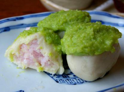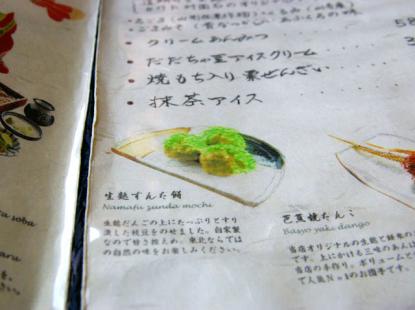 ずんだ(枝豆をすりつぶして作る餡)をたっぷりのせた