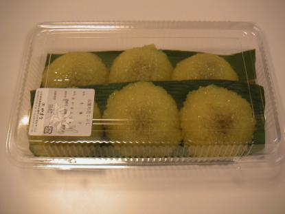 蔵王の稲花餅(いがもち)のように笹の上に3ヶのっかっています。
