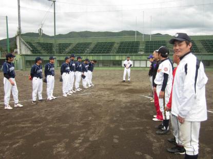 大迫野球場にて、