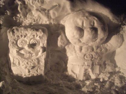 白川荘「暖回廊」雪広場 「キャラクター雪像」:飯豊町いいでファンクラブ|交流ひろば