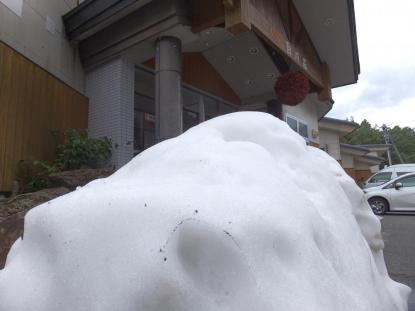 真夏に雪の塊が白川荘の玄関先に登場