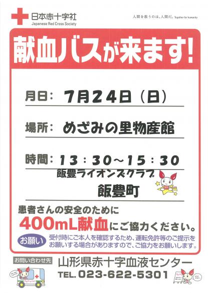 献血バスが来ます!:飯豊町いいでファンクラブ|交流ひろば
