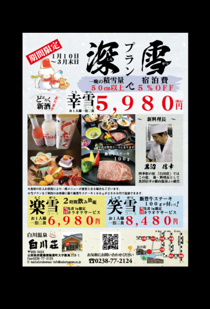 そろそろ明後日あたりから大雪予報が、今から予約のチャンスかも。