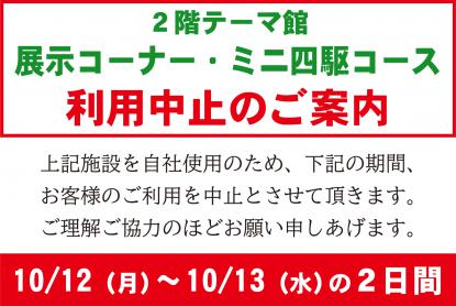 2階展示コーナー、ミニ四駆コース利用中止のご案内