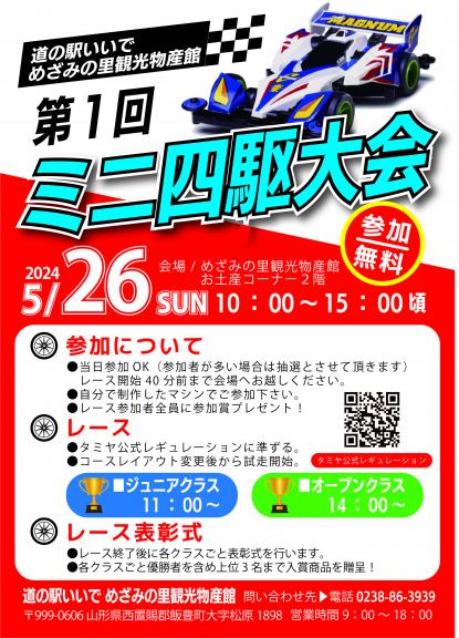 めざみの里観光物産館 第1回ミニ四駆大会参加者募集:飯豊町いいでファンクラブ|交流ひろば
