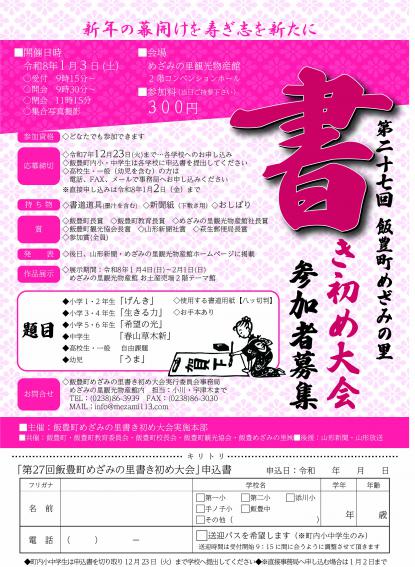 第27回飯豊町めざみの里書き初め大会開催のご案内:飯豊町いいでファンクラブ|交流ひろば