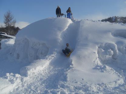 白川荘「暖回廊」雪広場 昼のスベリ台風景:飯豊町いいでファンクラブ|交流ひろば