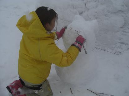 白川荘暖回廊 雪広場 雪像ドラミちゃん製作中