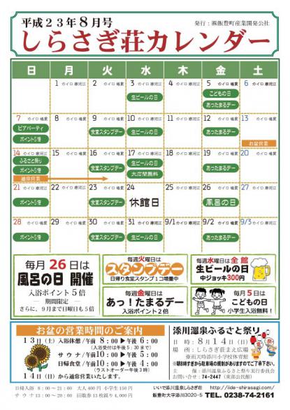 しらさぎ荘 8月カレンダー:飯豊町いいでファンクラブ|交流ひろば
