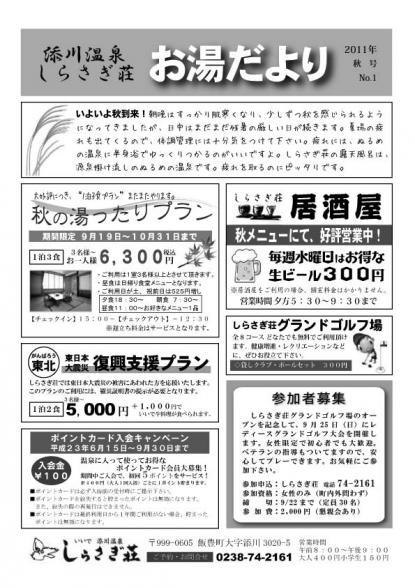 しらさぎ荘 お湯だより秋号とゴルフコンペ開催のお知らせです。:飯豊町いいでファンクラブ|交流ひろば