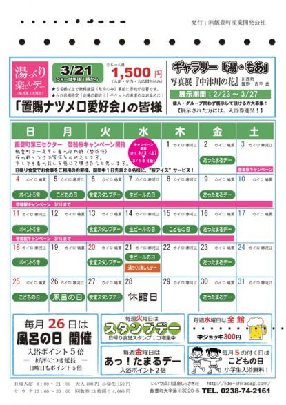 しらさぎ荘 3月カレンダー:飯豊町いいでファンクラブ|交流ひろば