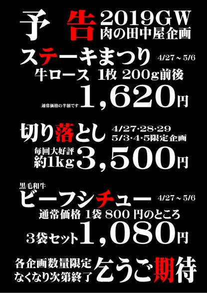 2019GW 肉の田中屋限定企画(めざみの里観光物産館店)