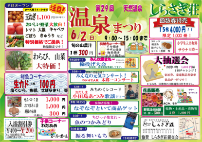 第29回 しらさぎ荘温泉まつり6/2開催!:飯豊町いいでファンクラブ|交流ひろば