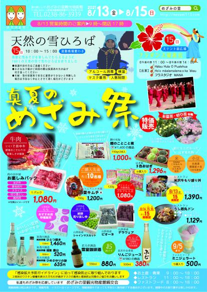 真夏のめざみ祭・8/13営業時間変更のお知らせ:飯豊町いいでファンクラブ|交流ひろば