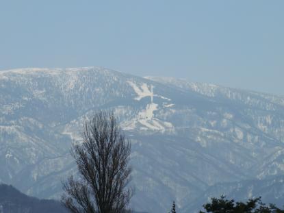晴れていて遠くの山々が残雪できれいです。青空が悲しいほどきれいです。