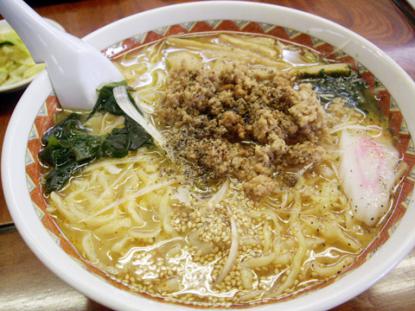 見た目は、スープが赤〜く具材もたっぷり胡麻の香りがただようラーメンでした。
