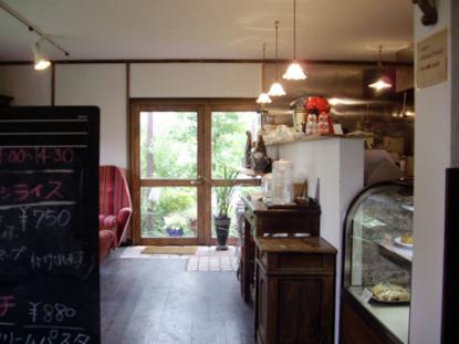 ガーデニングショップ内にあるので、はじめて訪れた際に「場所はここでいいのかな?」と思いましたが、緑に囲まれたお庭を通り、木製のドアをあけると、いろんな家具と緑、小物を配置した自由なスタイルの素敵な空間が登場します。
