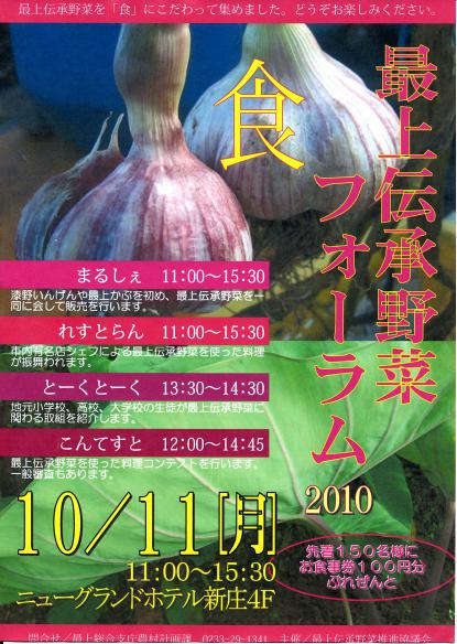 10/11最上伝承野菜フォーラム2010:ヤマガタンAnnex|山形の農業〜農林水産