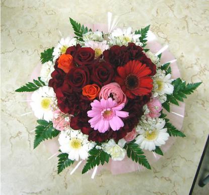 お誕生日のお祝いにハートのアレンジ 09-03-29:山形の植物・園芸