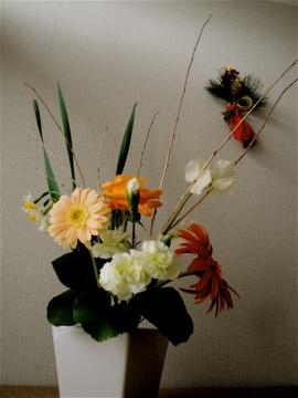 少しだけ和風のもの、たとえば、千両や金柳、水仙などを足してください。