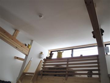 階段の隙間を通って、次男坊は食器棚に乗るのが大好き。