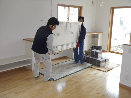 ●河北町H団地 HA様邸新築工事-45 蓄熱式暖房器搬入 『テクノストラクチャーで建てる山形の長期優良住宅』
