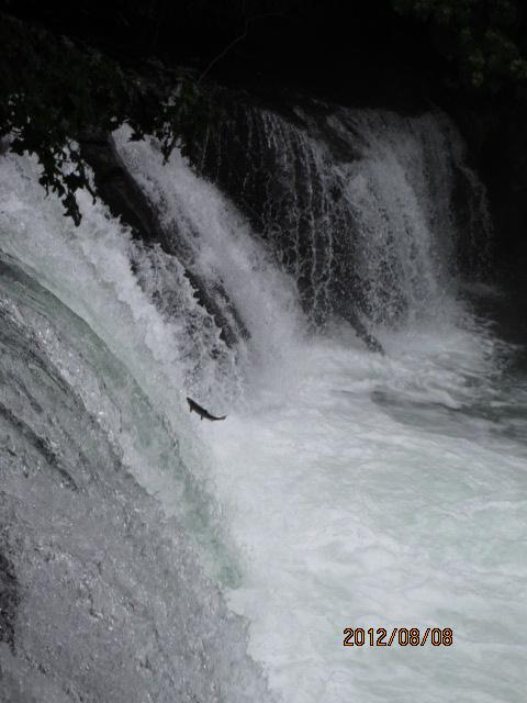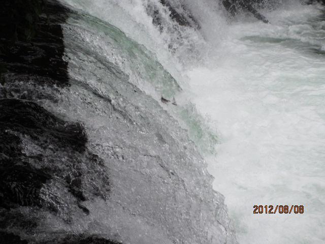 サクラマスのジャンプは滝の長さの半分くらいしか届かないのです。