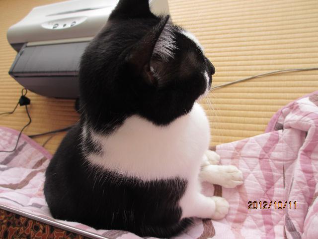 ワタクシがこれに時間をかけていると、ネコが服の上から噛むのです。