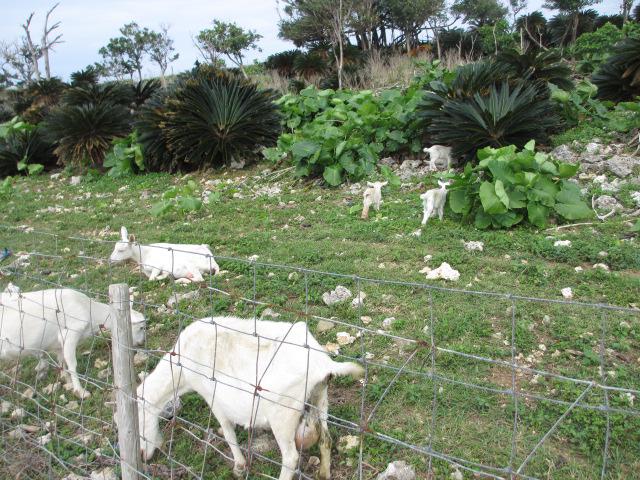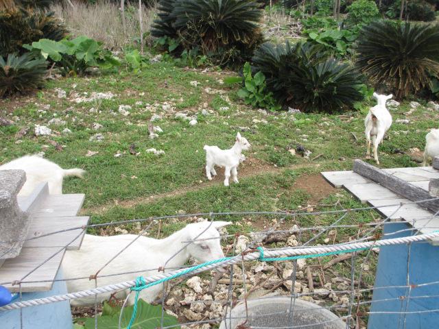 島のあちこちにヤギがいました。繋がれいてるものも、野放しのもいました。