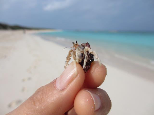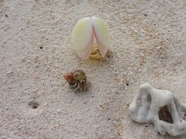 白い砂浜の中で、黒っぽいこの貝類は小さくても目立つのです。