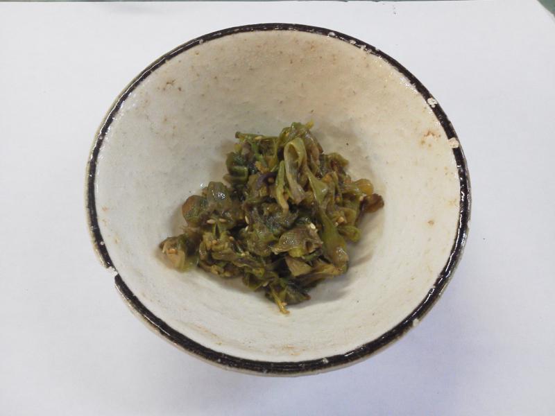 芯の苦い所は使わないで、まわりの葉っぱだけを使うので、そんなに苦くない。