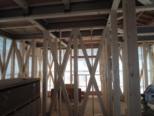 ●河北町 KN様邸新築工事 14 軸組み完了 『テクノストラクチャーで建てる長期優良住宅』