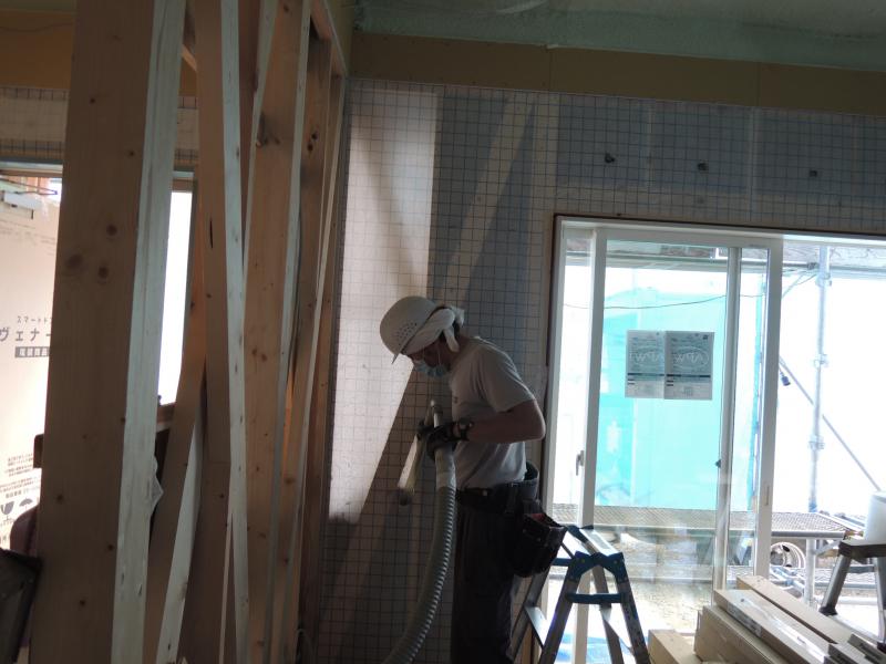 ●河北町 KN様邸新築工事 18 壁断熱工事02 『テクノストラクチャーで建てる長期優良住宅』