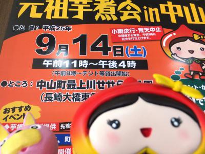 平成25年9月14日(土)11時〜16時中山町最上川せせらぎ公園にて元祖芋煮会in中山開催します。芋煮食べにきてください☆すもものしずくちゃんマルシェも同時開催☆あのキャラクターも・・!?