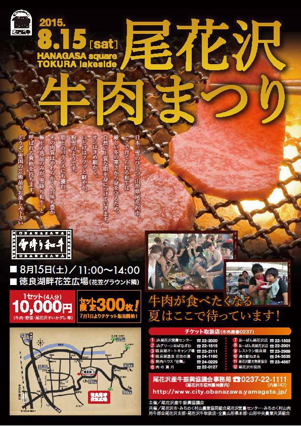 尾花沢市は約1万頭の牛肉を飼育している チャンピオン牛の里です自然豊かで寒暖の差が生んだ牛肉は最高級8月15日 尾花沢牛肉祭り 7月1日よりチケット発売開始です 4人分 1セット 1万円(当日券はありません) 取扱い:尾花沢市 尾花沢市観光物産協会など
