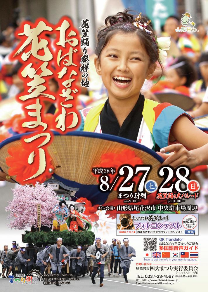 8月27日・28日花笠踊り発祥地尾花沢市 「花笠まつり」開催いたします  詳しくは おばなざわ花笠まつり大きな笠がダイナミックに廻る笠踊り 伝統5流派の踊りは見応えあり無料観覧席(事前予約)もありますお問い合わせ 尾花沢市観光物産協会         0237−23−4567