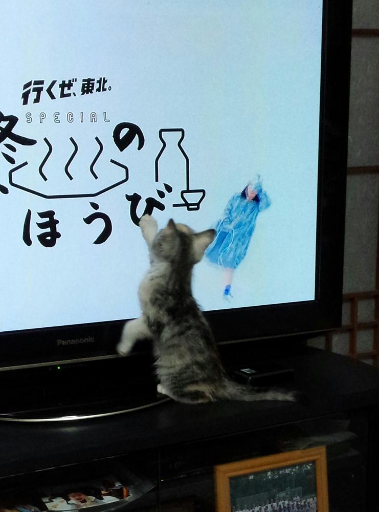 テレビ台にぴょーんと飛び乗れるようになったにこちゃん