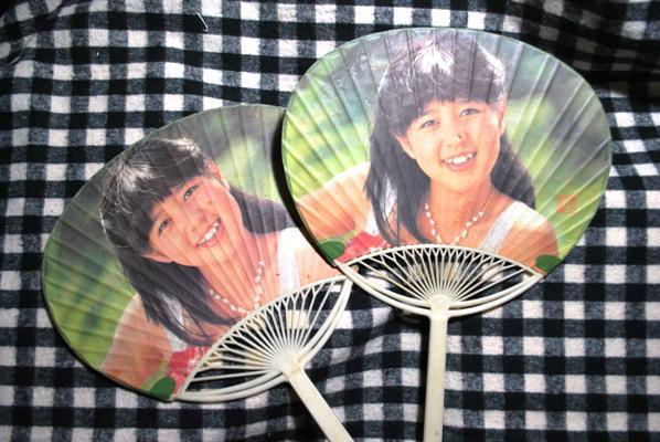 昔はよく暑中見舞いとかで宣伝広告用うちわをもらうというのがありました、いまではあまり見かけなくなった。 ”富士ヨット学生服”で製作した衣料品店のうちわ、痛んでいるが捨てられません、八重歯の可愛いい真子ちゃん、デビュー曲の『狼なんて怖くない』は吉田拓郎さん次の曲も拓郎さんでした、わたしたちの世代では真子ちゃんファンはたくさんいたと思いますが、二十歳にして長渕さんとの結婚は驚きました、しかも仲人は吉田拓郎夫妻このとき妻は浅田美代子さん・・・どっちもアイドルをくうてしまって ・・許せないナー・・しかもどっちも合うのかなのかなーとか当時仲間内でもそうおもっていたがほどなく離婚してます、アイドル見た目とはちがうぞーなんてラジオで話していたと思います・・70年代フォーク歌手はもてていたんでしょう。こちとらもてない野郎たちが集まってひがんでいただけですが・・昔寮生活していた頃、いつも週末になるとどこかの部屋に集まり夜明けまで話していた、そんな時代もあった青春時代がなつかしい。