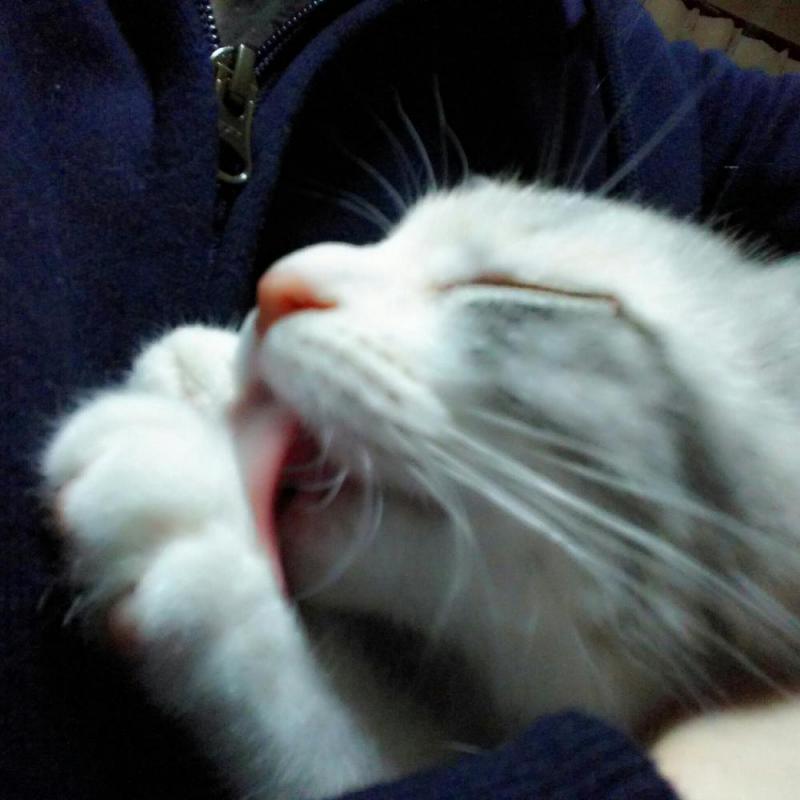 自分のクリームパンを美味しそうに舐めるにこちゃん
