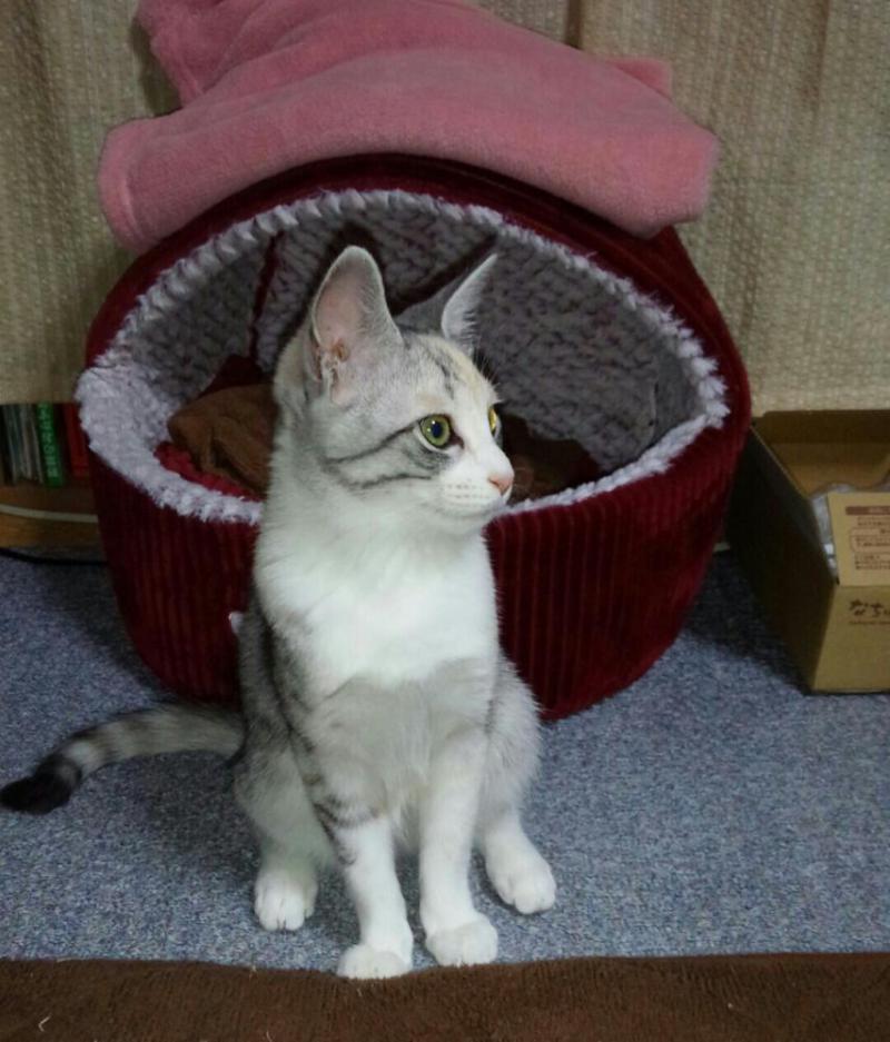 立派におすわりしてるけど、前足も後ろ足も、がに股のにこちゃん(笑)