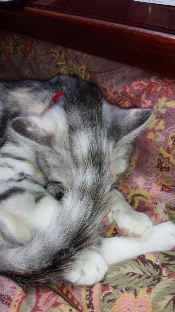 ビックリ!耳の間にしっぽがぺろ〜んとのっている(笑)なんで?!