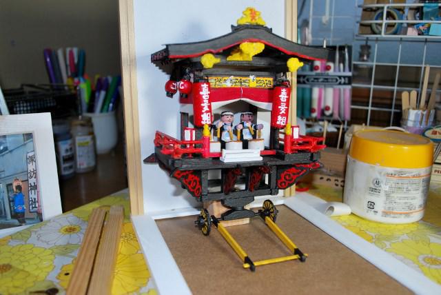 諏訪神社の例祭 毎年8月26日に行われる商宮律(しゃぎり)屋台の押し車、川西町小松地区西、南、北区の三つの地区のしゃぎりが町中を練り歩く、化粧した小学男子が笛の音と共に太鼓を響かせていく、同じように見えて各地区の屋台はみなどこか違う、隣の中小松も以前は行われていたが今はない、残しておきたい伝統行事。とりあえず北区の一部中心の提灯と下の幕を作ると完成、汎用のケースがないからケースも手作り10日のこまつ市に間に合うか微妙
