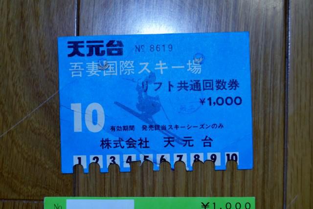 硫黄鉱山時代の学校を宿舎に改造し、昭和38年12月にスキーリフト1基を新設し、スキー場をオープンしたのが始まり、最盛期には6基のリフトが稼働し、昭和40年11月にホテルが営業を開始、昭和52年には、施設と社名を一体化するため、株式会社天元台に社名を変更しました。昭和61年にはスキー選手の夏の強化と夏山リフトの利用客増加を図るため、全国に先駆けて「グラススキー場」を「しらかばゲレンデ」にオープン、昭和62年天元台ロッジの全面増改築とロマンスリフトを新設し、スキーの黄金時代に即応し、スキーヤーの安全確保と輸送力の増強を図ってまいりました。(天元台HPより)とあります、初めて天元台に行ったのは高校1年のスキー場開き、昭和47年11月末あれから45年後まさか定年してここに勤めることになるとは思ってもみなかった。アルバムの中に昭和53年1月3日正月休みで帰省した時に行った天元台のチケット残してありました、当時回数券10回1000円、リフトが5基、ロープ塔も2基,天元台ホテルがありました・・スキー場の名前は吾妻国際スキー場なつかしい。。なぜかな昔、国際スキー場という名前が多かったような気がします。