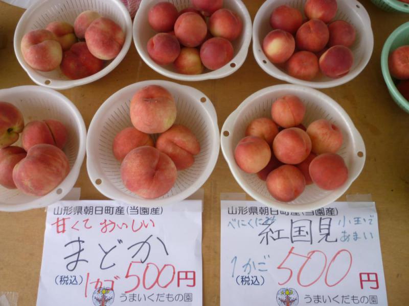 オレンジの屋根特設テントでは桃 まどか・紅国見、すもも 貴陽・ソルダム、珍しい黒いすももなどなどお土産にぴったりなくだものたくさん販売中です。