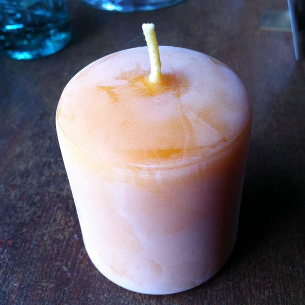 蜜蝋に白い蝋粉がつく季節となりました。本物の証です。昔、糖分かと思い舐めてみましたが甘くなかったです。夏場に感じる表面のペタペタが寒くなって固まるのだと思います。これは熱風を当てればすぐに消えますが、灯した時に白い粉を溶かしながらオレンジ色が鮮やかに現れるのも一興です^^