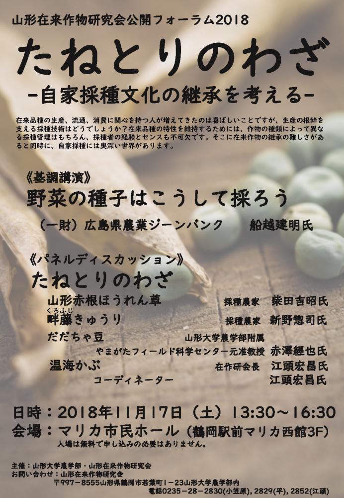 ●今年の山形在来作物研究会公開フォーラム開催のお知らせ