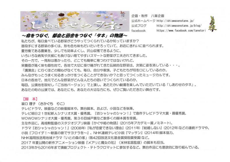 ●ミュージカル「しあわせのタネ」について