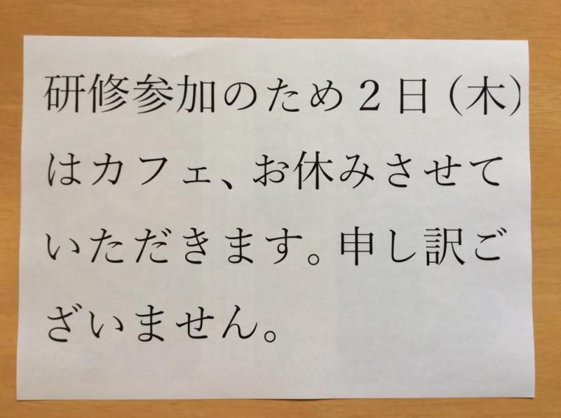 9月に入りました。気温も下がり、夕暮れも早くなってきました。あの猛暑の日々が遠い昔のようです。さて、お知らせですが明日2日(木)酒類販売管理者研修の為、カフェ臨時休業いたします。申し訳ありませんが、よろしくお願いします。