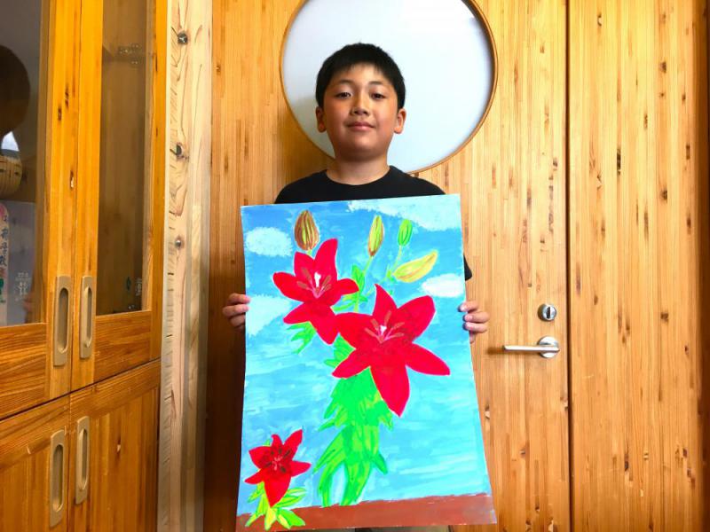 5年生の2名が、絵画をもってきて見せてくれました。紹介します。ゆりの絵です。どちらも緻密な下描き、そして豊かで鮮やかな色使いです。力作です。ゆり園での写生大会は雨天中止になったのですが、この2名の子は自主的に描いてきたということです。気づき、考え、行動する姿、素晴らしいと思いました。金賞をあげたいです。